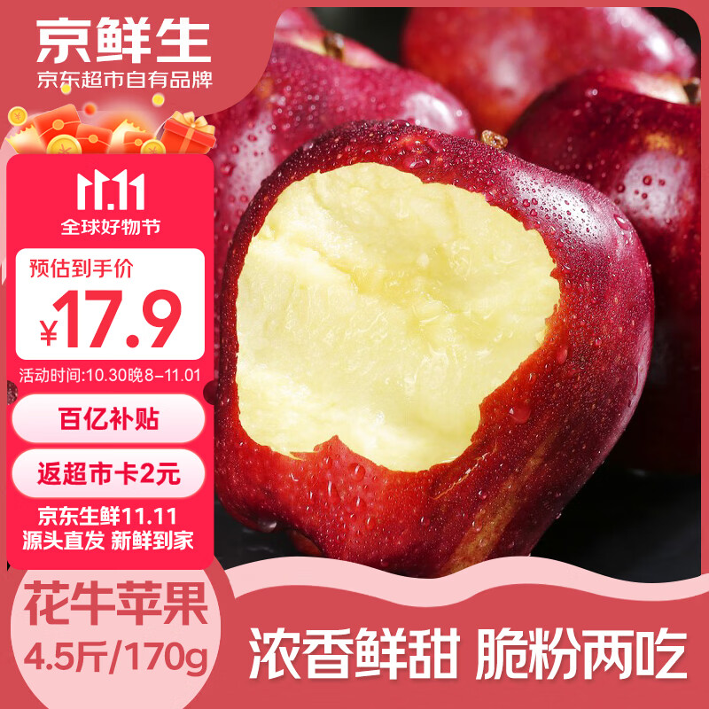 包邮 京鲜生 天水花牛苹果 净重4.5斤 单果170g+ 生鲜水果源头直发